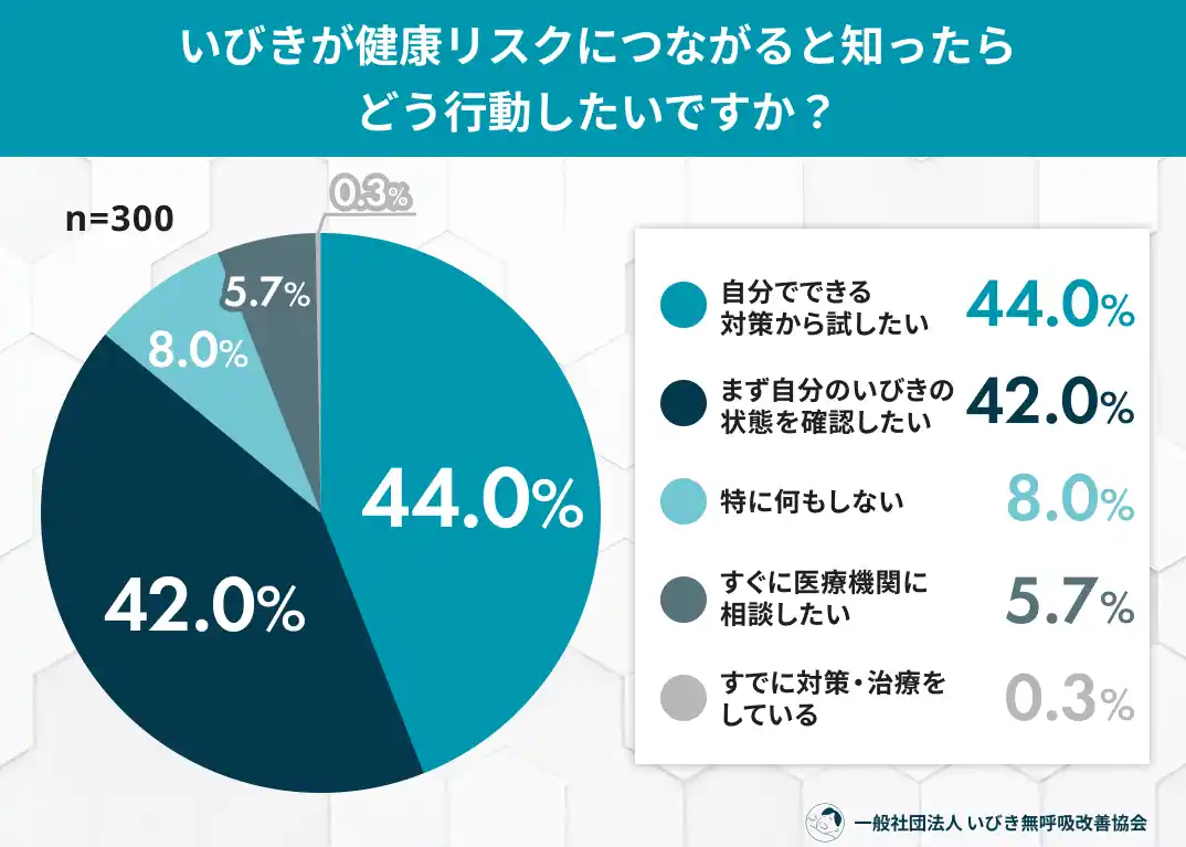 今回の調査により、多くの人がいびきを自覚しながらも、それを「ただの音」や「一時的な疲れ」として片付けてしまい、医療機関への相談を後回しにしている実態が明らかになりました。特に、脳卒中や高血圧といった命に関わるリスクとの関連性が十分に認知されていないことが、受診ハードルを高くしている要因と考えられます。一方で、正しい知識を得ることで「まずは確認したい」「対策をしたい」という意向が急増することから、セルフチェックや啓発活動の重要性が浮き彫りになりました。 |