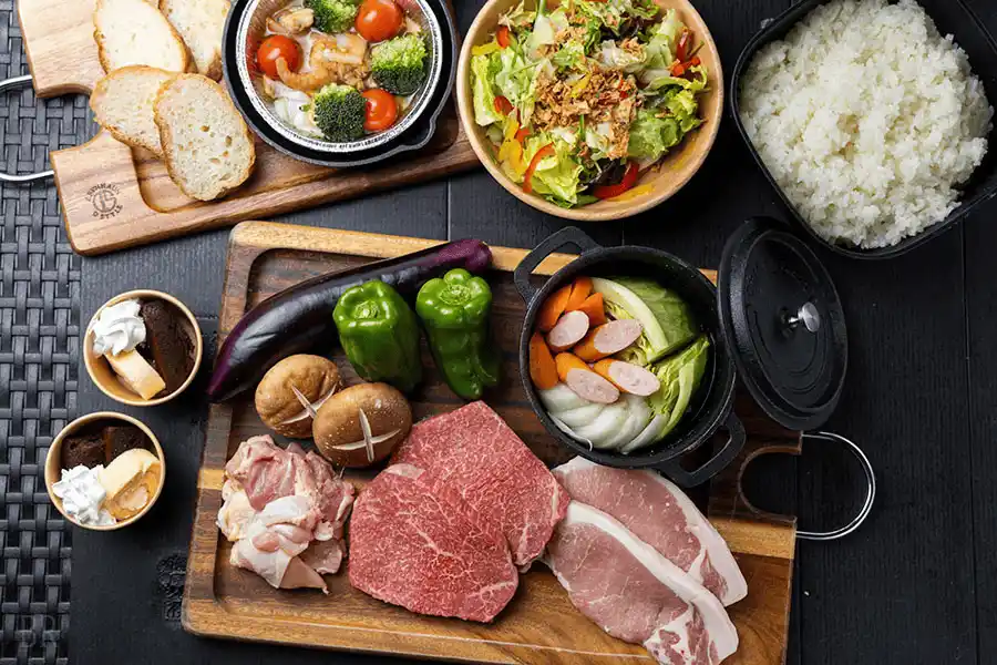 夕食には、岐阜自慢の飛騨牛や、地元農家直送の新鮮な野菜を贅沢に盛り込んだBBQをご用意。美しい緑に囲まれながら、ジューシーな飛騨牛を本格グリルで豪快に焼き上げ、香ばしい香りとともに岐阜の自然の恵みを味わう特別な食体験をお楽しみいただけます。 |