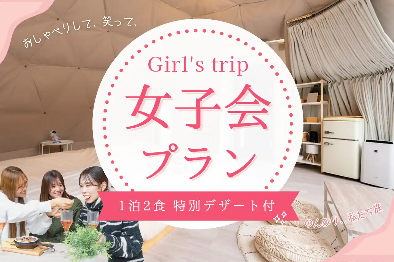 1. 女子会専用アメニティセット └ Refaドライヤー/ヘアアイロン/アメニティ 2. フェイスパック付き 3. 夕食を女子会専用デザートへ無料変更 4. インスタ映え用撮影グッズ貸し出し |