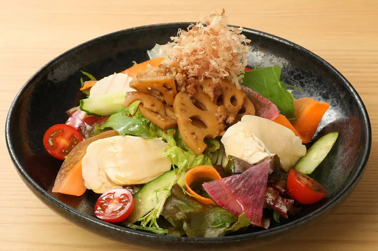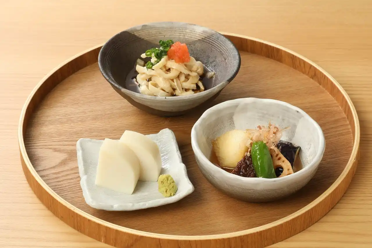 日替わりでご用意する「おばんざい3種盛」や、「但馬どりの玉子焼き」「とり梅きゅう」など但馬どりを使ったさまざまな一品料理をご用意しています。焼鳥とあわせて、お酒と楽しむ「蕎麦前」として豊富な料理をご堪能いただけます。 |