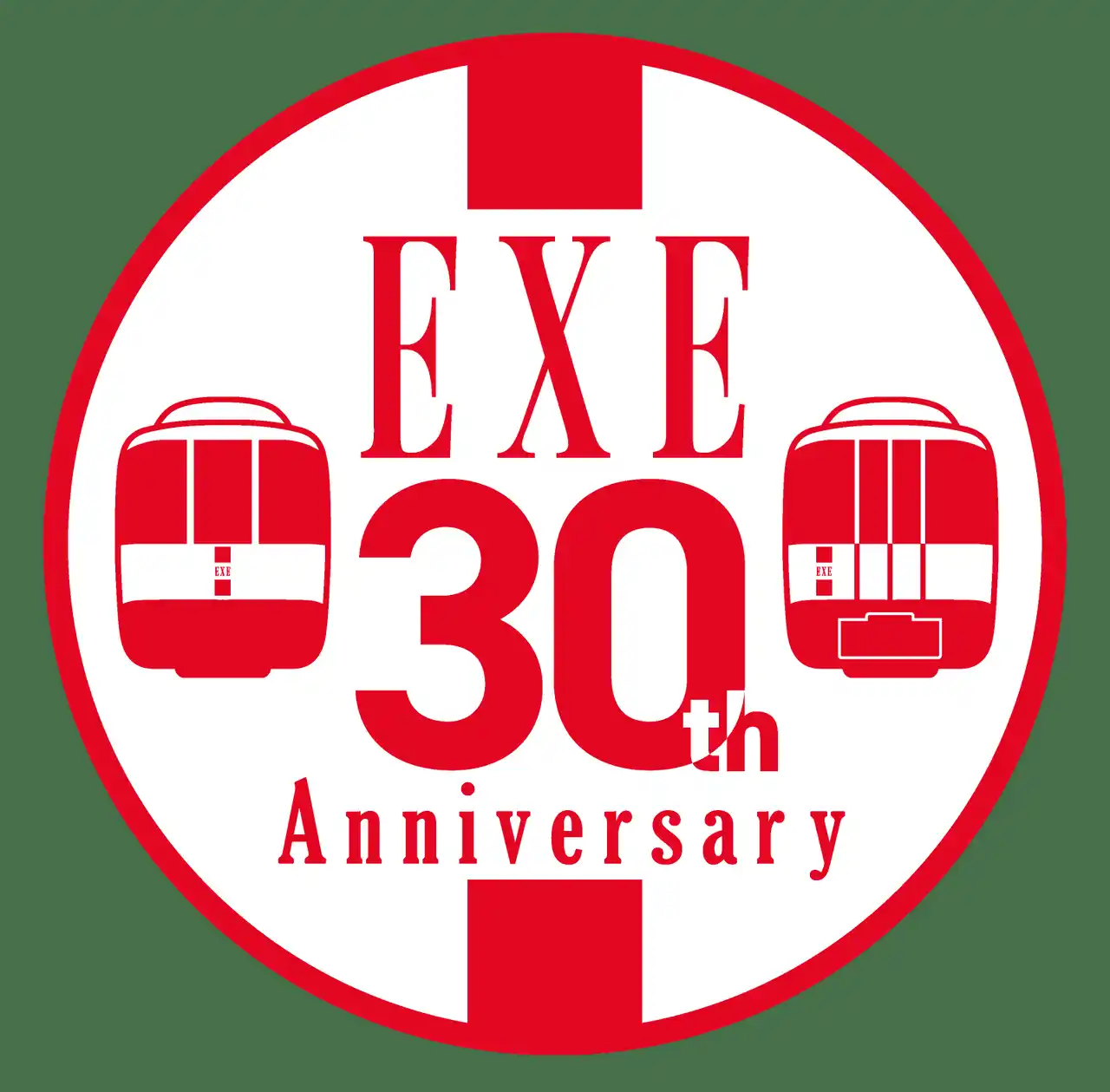 | 3月12日から、EXE4編成のうち2編成(30057×4両編成、30257×6両編成)に記念ヘッドマークを約1年間掲出します。同車の特徴である前面赤帯のデザインを基調に、連結設備が見える側(6号車・7号車)と見えない側(1号車・10号車)の二つの顔をデザインしています。 | ||||