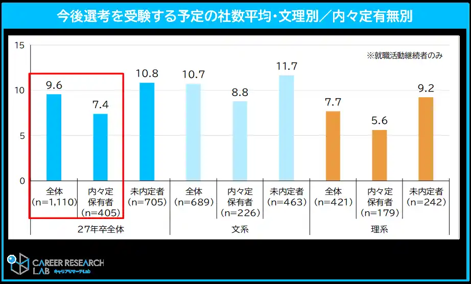 活動継続率は84.1%と高水準。今後選考を受験予定の企業数は平均9.6社