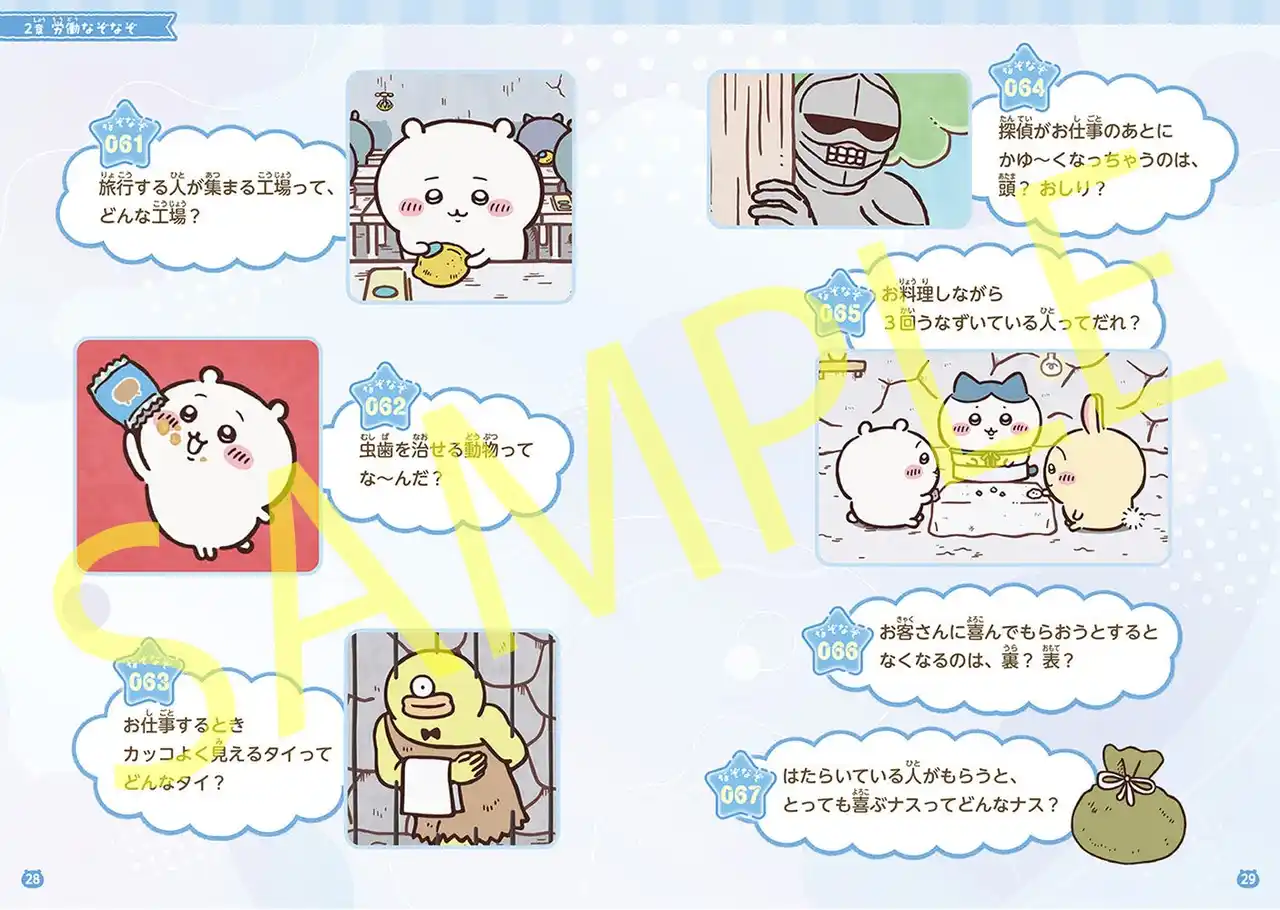 ちいかわたちキャラクターや、「労働」のようなアニメの世界観にちなんだ問題等、4つのテーマでなぞなぞをお届けします。 |