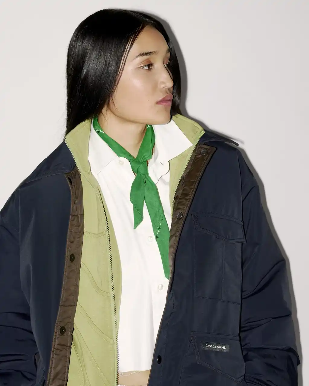 本コレクションは、冬の重みから解き放たれ、軽やかさと躍動感へとシフトした、新たなカナダグースを象徴するラインナップです。ハイダー・アッカーマンの視点を通じ、大胆なカラー、洗練されたプロポーション、そして現代的な素材選びによって、ブランドの伝統であるクラフトマンシップと機能性を再解釈しました。冬から春の光へと移り変わる瞬間の美しさを表現しています。 |