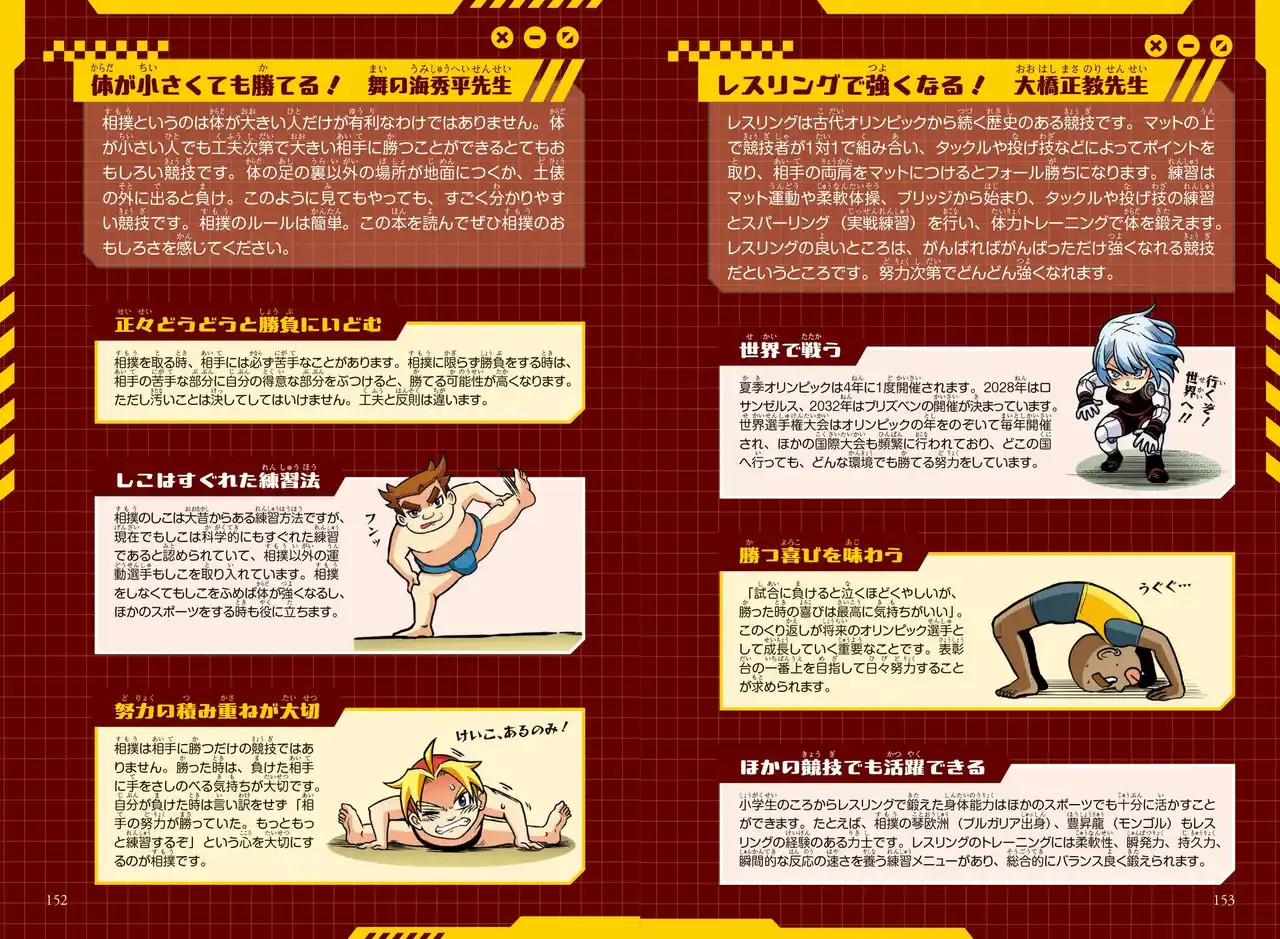 相撲とレスリング、それぞれの競技の熱さと知識をしっかり学ぶことができます。 |