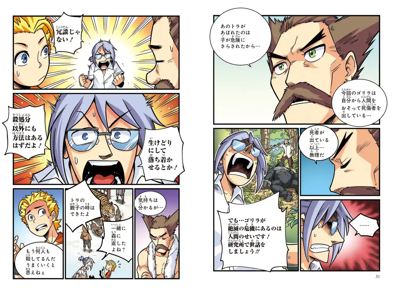 密猟が行われるウガンダで、家族を殺され捕らえられたゴリラが、依頼主である日本の動物園への輸送途中に脱走!! 怒ったゴリラが、住民に被害をあたえる事態におちいっていた。ゴリラの処分を命じられたディグスとチャールズの意見は対立! ゴリラを助けようと日本に向かったチャールズは、山での捜索に苦戦する。友情と任務の間で二人は、このピンチをどう切りぬけるのか!? |
