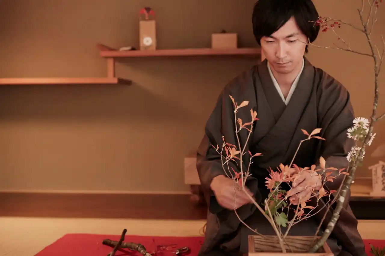 未生流笹岡家元から直接華道を学ぶことができるプライベートレッスンです。静謐な和室で花材と対話し、生け方の初歩から日々の暮らしに通じる教えまで得ることができます。草花の取捨選択を通じて本質を見極める観察眼を養い、深い集中力へと導きます。伝統美に触れながら心を整える時間です。 |