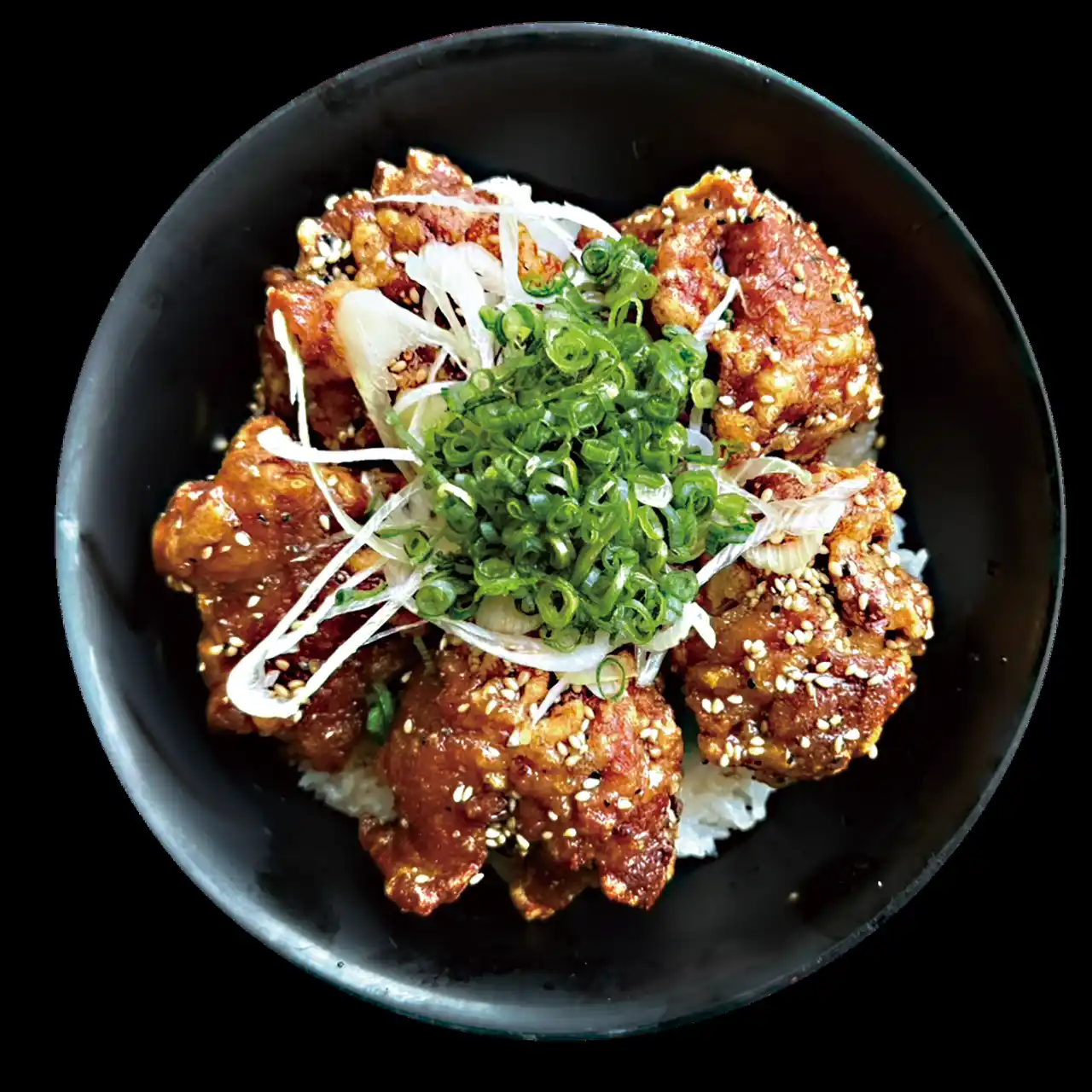 仕上げにたっぷり振りかけた香ばしいゴマの風味が甘辛ダレと相性抜群。 ジューシーな唐揚げとご飯にタレが絡み、最後の一口までやみつきになる一杯です。 |