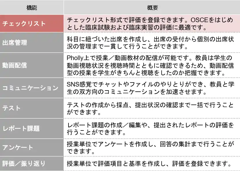 Mogic株式会社(本社:東京都練馬区、代表取締役:山根陽一、以下Mogic)は、コミュニケーション型授業支援システム「Pholly(フォリー)」において、新機能のOSCE支援「チェックリスト機能」がご好評いただいていることを背景に、販売代理店制度を強化いたします。 |