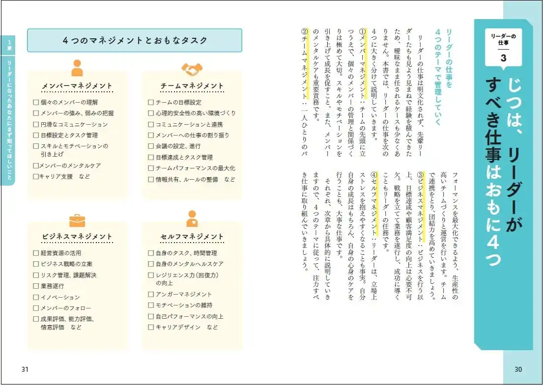 リーダーがすべき4つのマネジメントを詳しく紹介。 |