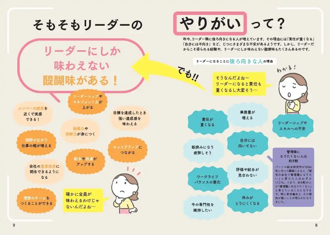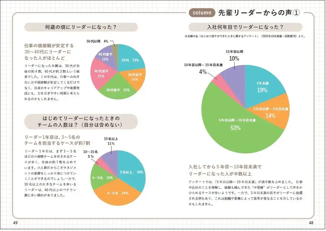 「先輩リーダーからの声」もたくさん収容。みんなの体験談が自分らしい形を作るきっかけに。 |