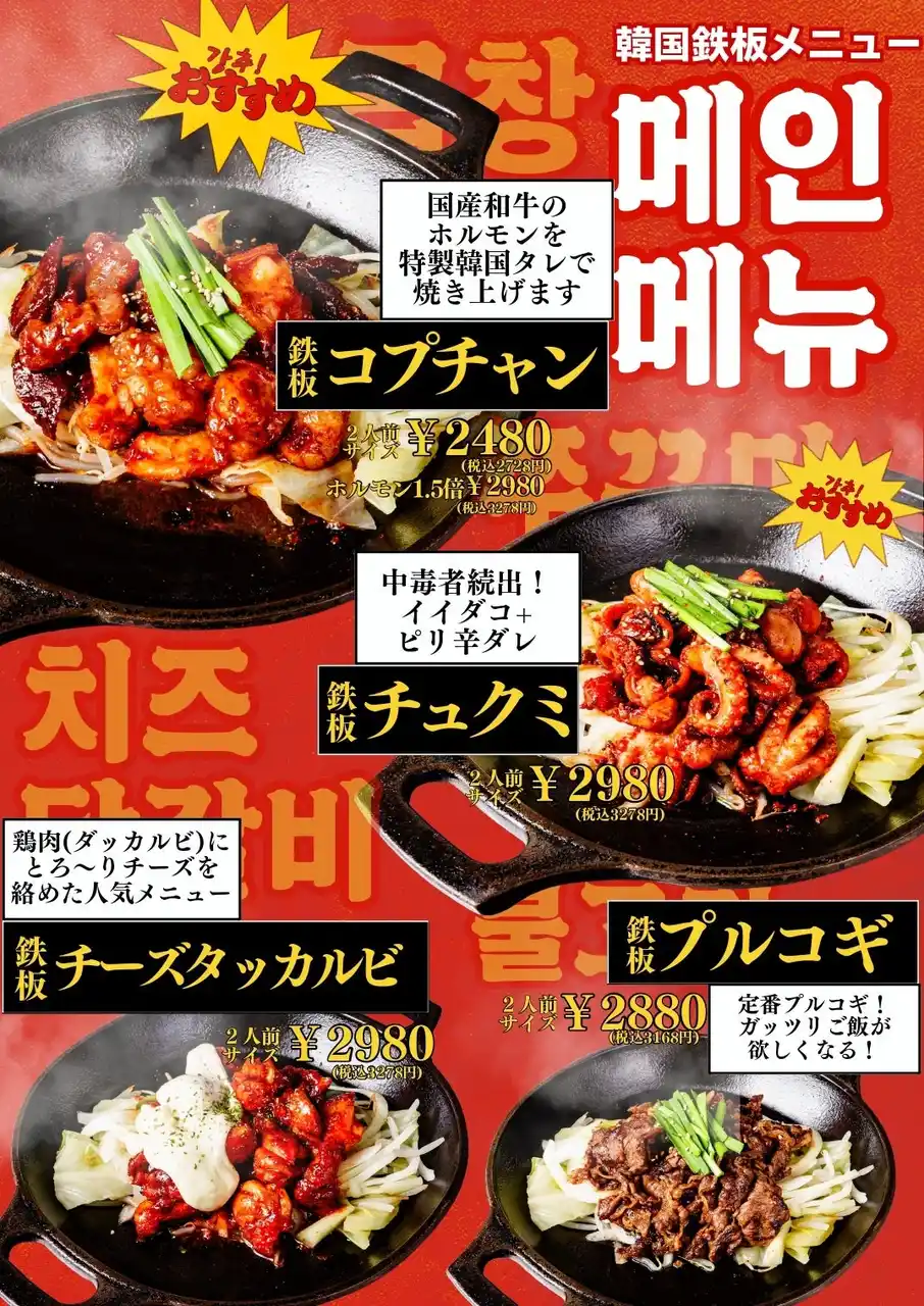 | 当店では韓国から取り寄せた本場仕様の鉄板を使用し、熱々の状態で提供。仕上げに目の前でチーズを炙るライブ演出を行い、味覚だけでなく視覚や香りでも楽しめる“体験型韓国グルメ”として提供しています。 | |||||||||