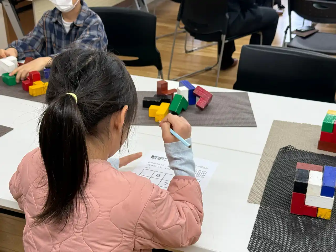 保護者の皆様がセミナーに参加している間、子どもたちは早慶ゼロワン浦和美園校の教育プログラムの一つである「りんご塾」の授業を体験しました。 楽しみながら思考力を育てる学習に取り組み、保護者が進路について学ぶ時間と同時に、子どもたちにとっても学びの機会となりました。 |