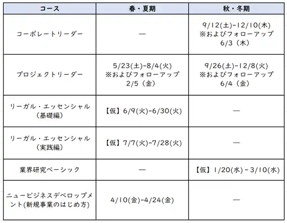 | ※「コーポレートリーダーコース」は、2026年度は秋期のみの開催となります。 | |||