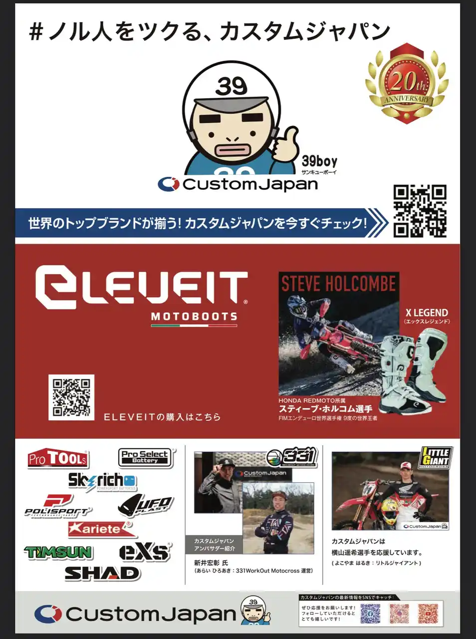 代表取締役 村井 基輝 コメント 「東京モーターサイクルショーにおいてカスタムジャパン20周年記念として過去最大規模での出展を実現できたことは、日頃よりご支援いただいているお取引先様、そしてライダーの皆さまのおかげです。私たちは単なる“パーツ販売会社”ではなく、アフターマーケットにおける経験価値を創造する企業でありたいと考えています。グローバルブランドと自社ブランドの融合を通じて、ライディング体験そのものの価値向上に挑戦し続けます。」 |