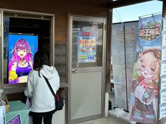 その一環として、茨城県鉾田市の無人販売所で農作物などを販売するとともに、モニターにVTuberが出演し、地元の方とリアルタイムで会話しながら交流を行う企画を実施しました。 |