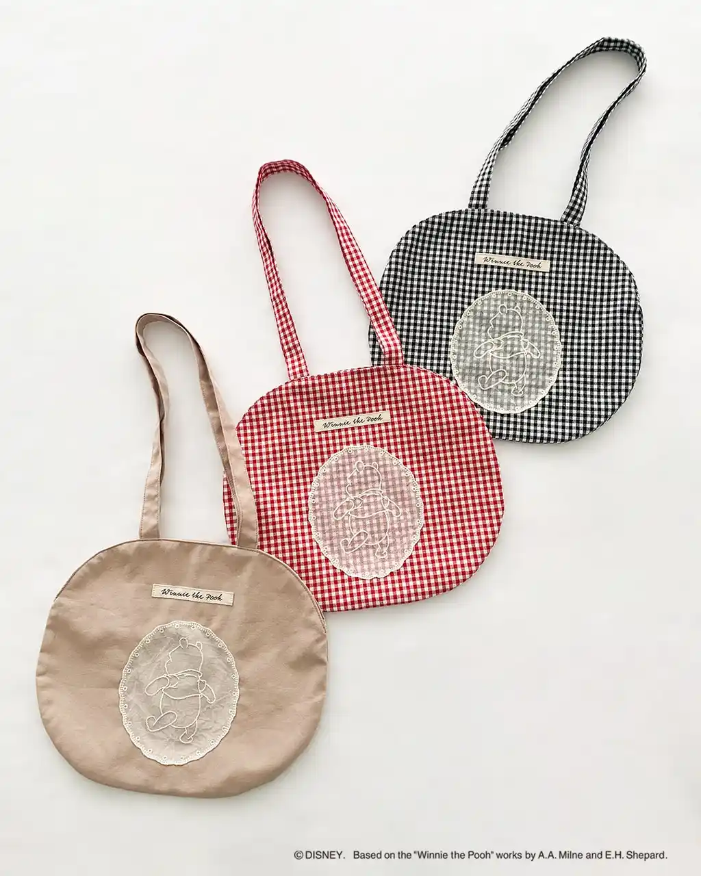 | ~「プーさん」を描いたレースモチーフが目を惹くロンTやバッグなど全4型~ |