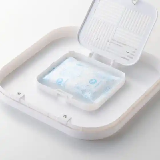 フードタンク蓋裏の乾燥剤ポケットに乾燥剤をセットできます。ドライフードを湿気から守って、いつでもカリカリをキープします。 |