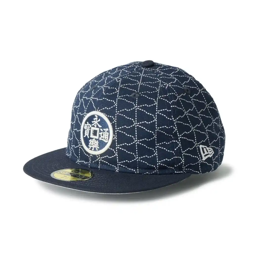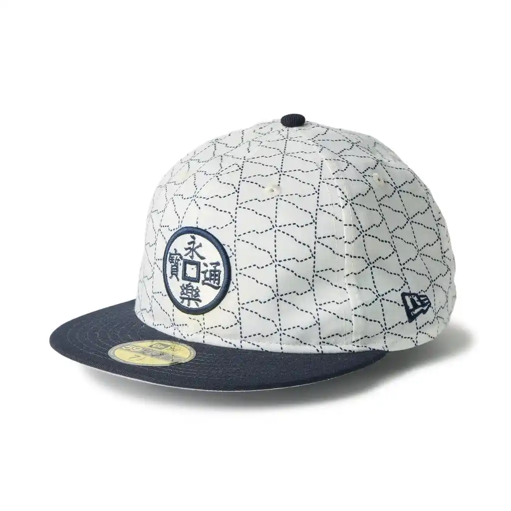 また、59FIFTY(R)モデルには、織田信長が好んで用いたとされる「永楽通宝」の意匠をフロントに刺繍で配置しています。「永楽通宝」は、永楽屋のロゴとしても使用されています。 |