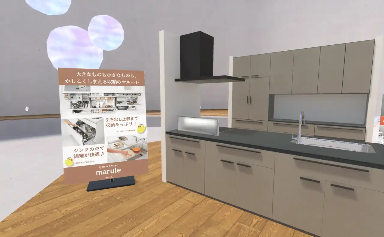 ハウステック メタバースショールームは、住宅設備業界初の試みとしてcluster上に2024年12月25日にオープンしました。等身大のアバターで製品を体験できるため、現実と同じスケール感をバーチャル空間内で正確に把握できるのが特徴です。キッチンや浴室のカラーシミュレーション機能など、バーチャル空間ならではの体験を提供しています。 |