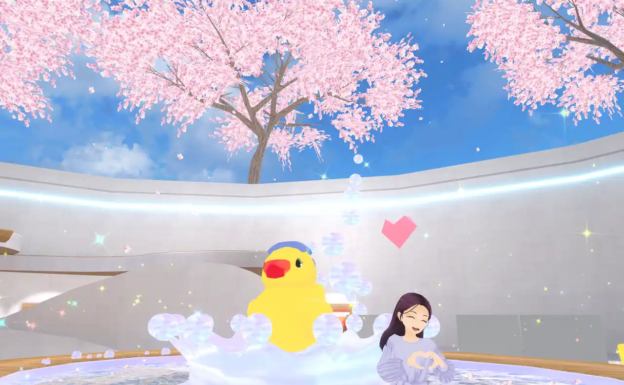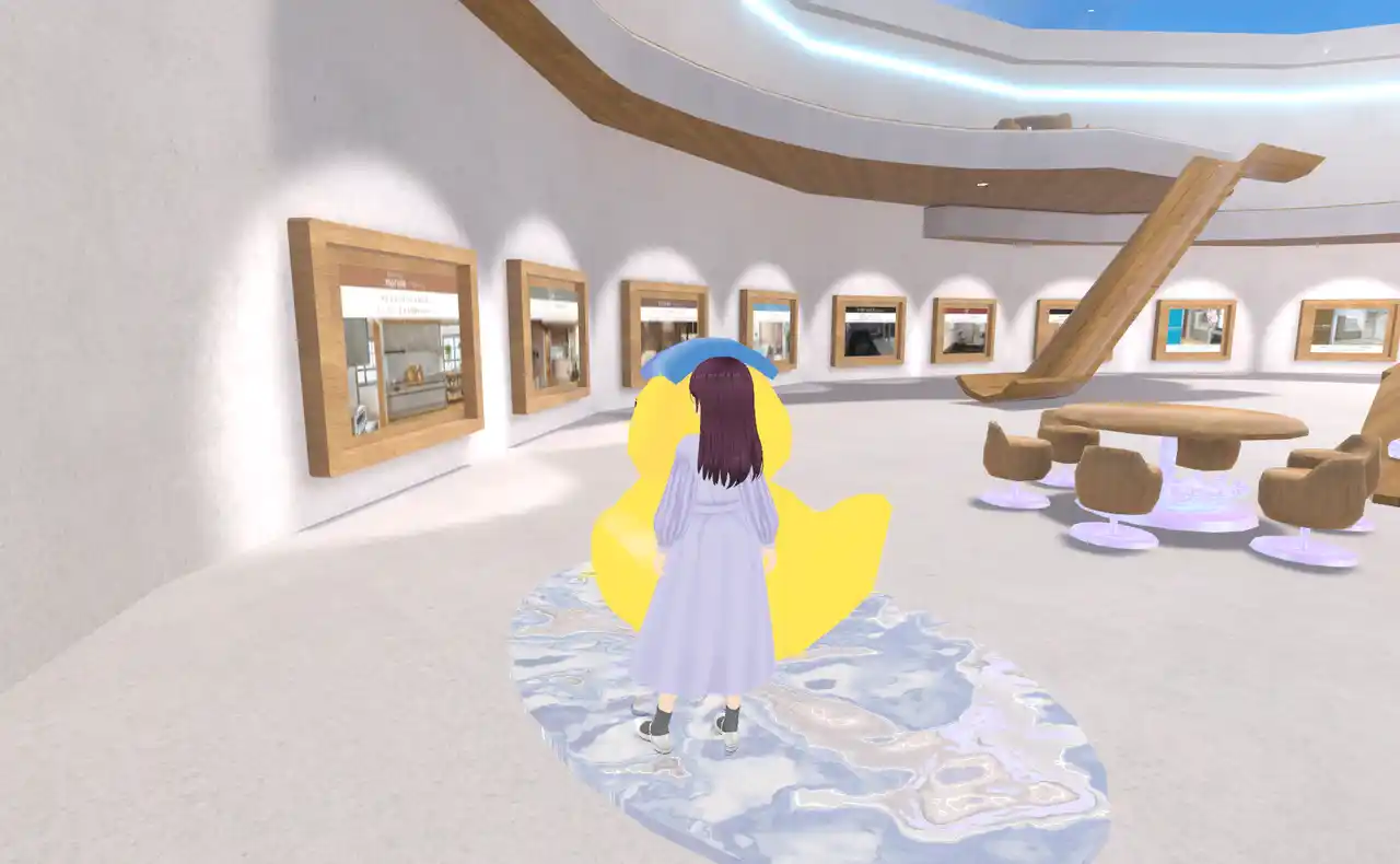バーチャル空間の特性を活かし、内観を冬仕様から「桜」が舞う春仕様へと刷新しました。訪れるたびに季節の移ろいを感じられる新鮮な体験を提供します。 |