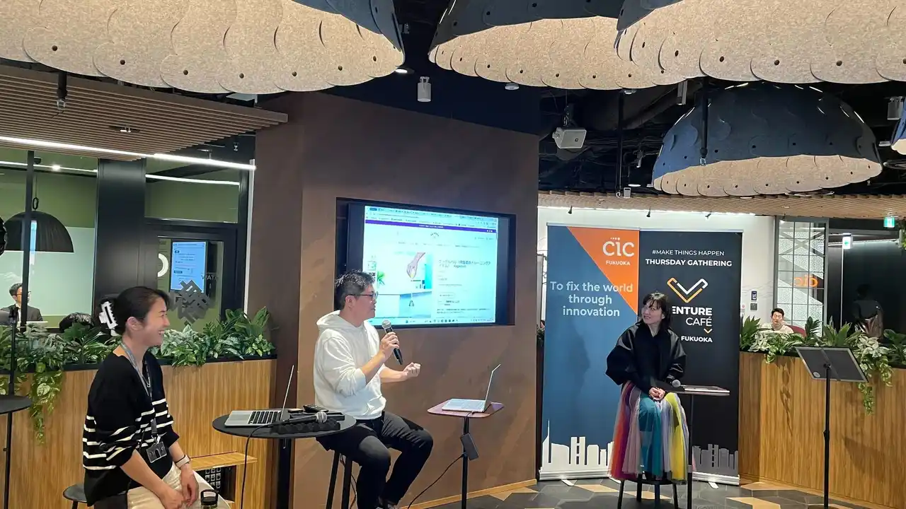 今回、連携パートナーであるCIC Fukuokaにて、本カンファレンスのサイドイベントを実施しました。本イベントでは、カンファレンスの一部セッションをCIC Fukuokaへライブ配信し、現地での視聴後に、以下のパネルセッションを開催。約20名が集まりました。 |