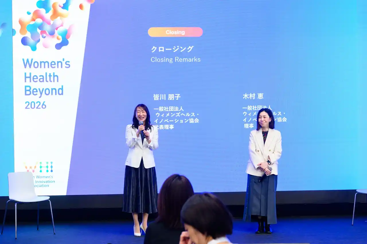 ウィメンズヘルス・イノベーション協会 代表理事の皆川朋子氏と理事の木村恵氏がクロージングとしてご挨拶いたしました。 |
