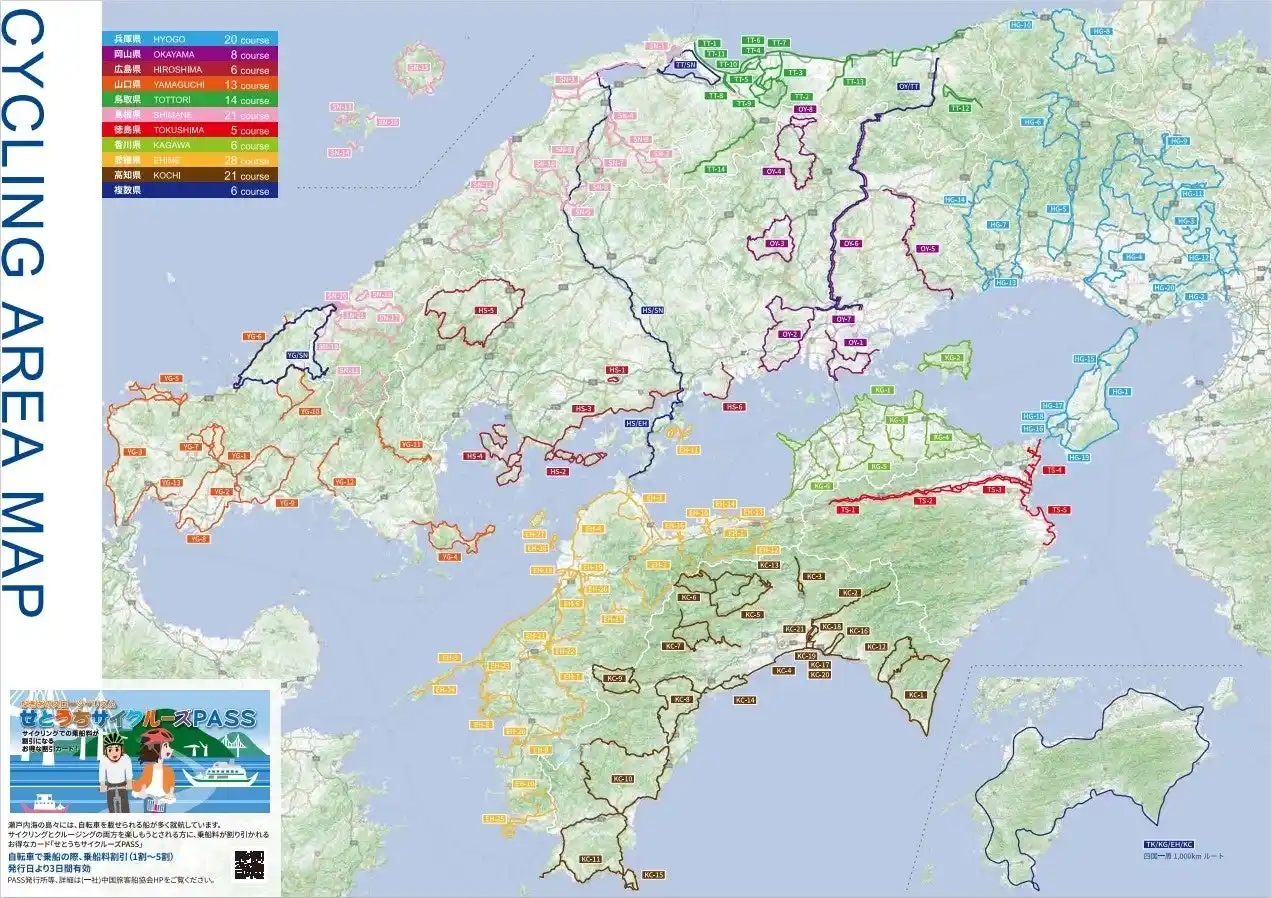 | 今回の最新版では、2025年11月に当協議会へ新たに加盟した「島根県」を加え、主に中国・四国地方10県の代表的なサイクリングルート(計148ルート)の情報を更新しました。また、各地で開催されるサイクリング大会等のイベント情報も充実させ、これまでのパンフレットより一層内容をパワーアップした構成となっています。 | |||
