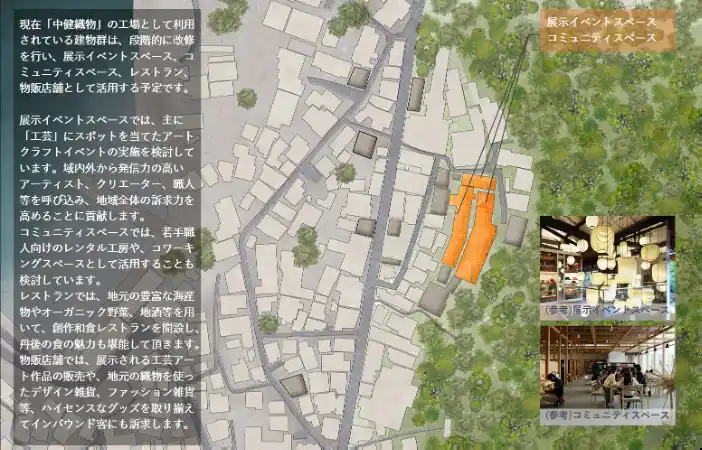 | 株式会社REVIVE及び株式会社日本の窓(京都市右京区:代表取締役 ルガシ・アブラハム)は、この度、京都府京丹後市・間人(たいざ)地区で長年、織物工場として操業してきた旧中健織物工場群跡地及び、間人区を中心とした周辺地域に点在する住宅跡地10棟等を改装し、『伝統文化を活かし、未来を創造する』という理念を掲げ、地域住民、地元関係者、地元行政の皆様方のご協力と協業の下、丹後地方の織物文化をテーマとした文化観光拠点として整備し、広く織物製造業、観光業、その他関連産業の復興と振興を目指し、2026年4月より改装工事に着工致します。 | ||||||||||||||||||||