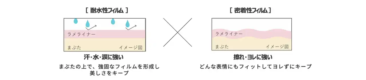 定番品のブラックコレクションと同様、独自処方「コンビネーション・フィルム処方」を採用。ラメでも粉っぽくなることなく、泣いても、笑っても、落ちにくく、滲みにくい。これから始まる春夏シーズンにも安心して使える処方です。 |