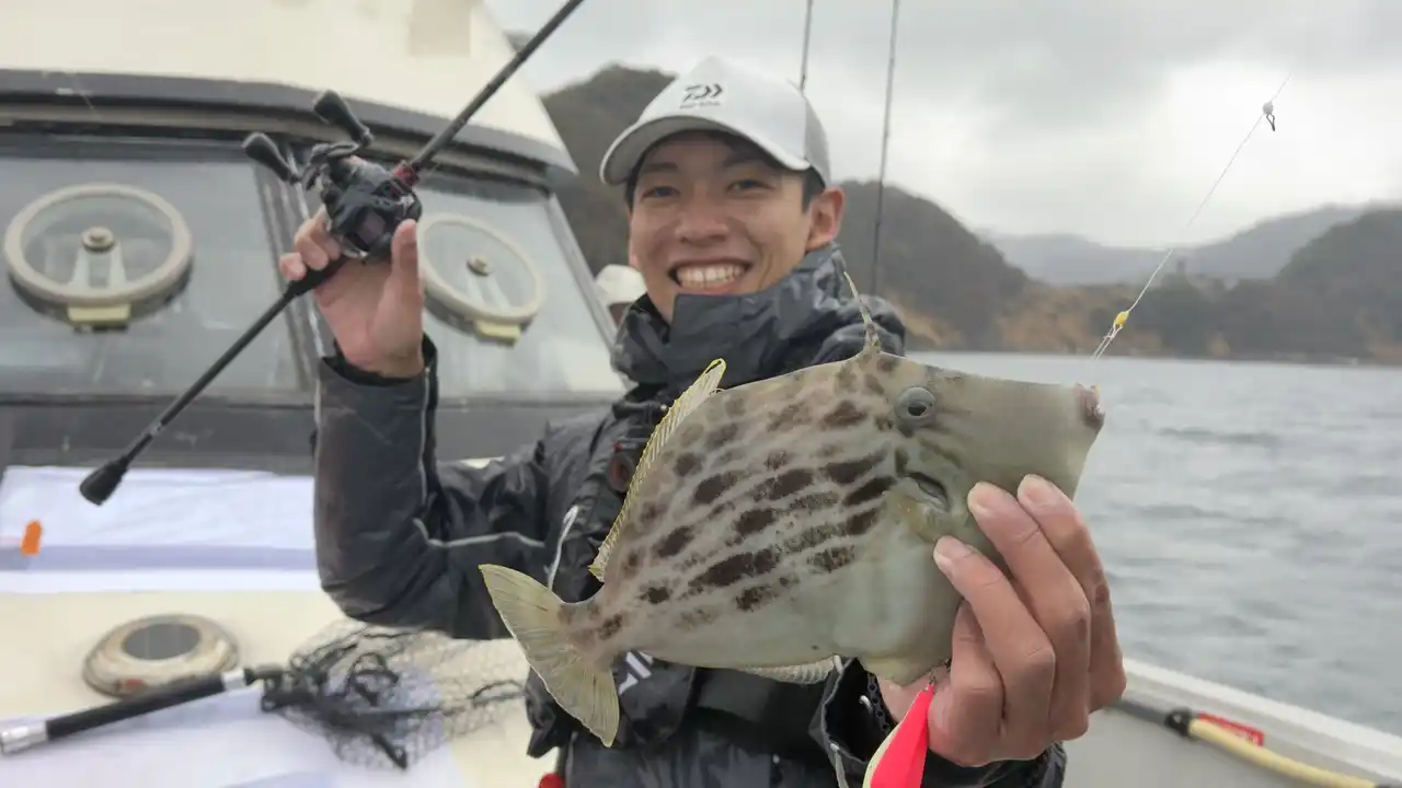 すると荒井にヒット!釣れたのは本命のカワハギ! |