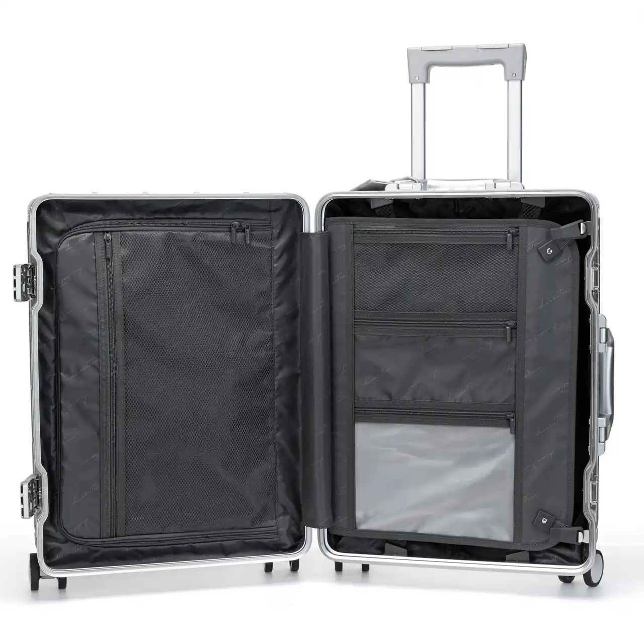 そのため市場では、アルミならではの質感や耐久性を前面に出した、シンプルな仕様の商品設計が主流となってきました。 弊社は「アルミの所有感はそのままに、移動をもっとスマートにしたい」という声に応えるため、アルミボディと多機能性の両立を実現する設計を追求。出張や移動の多いビジネスパーソンの使い勝手を起点に、所有感・耐久性・機能性を高次元で融合させたハイエンドモデルとして本商品を開発しました。 |