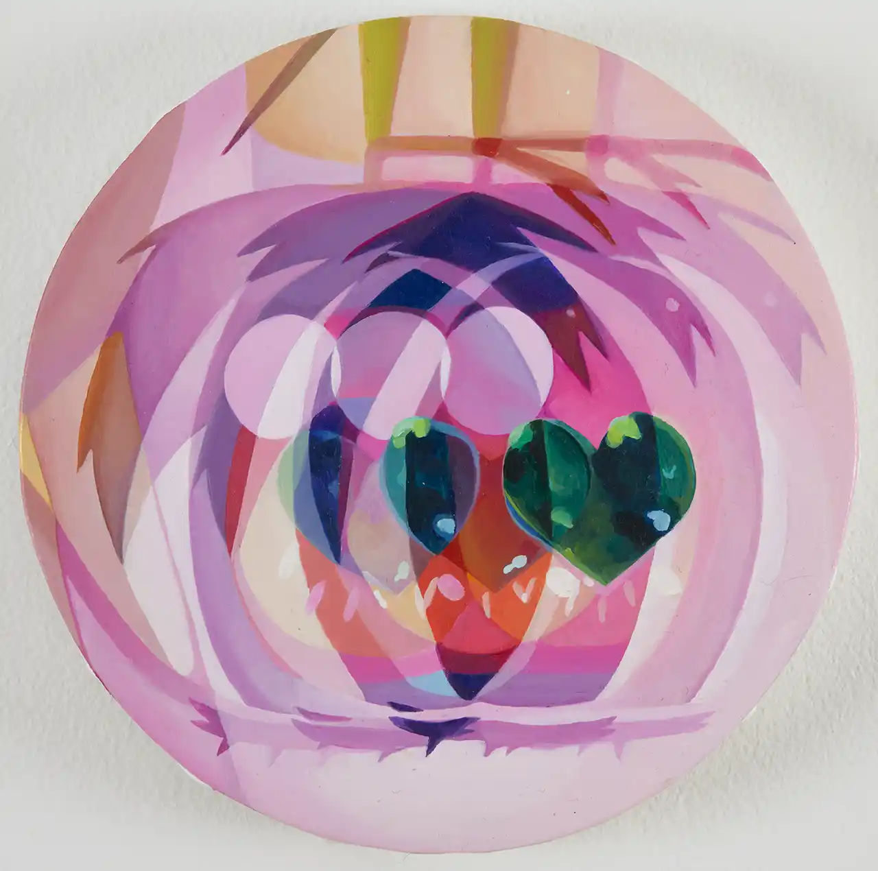 Images」は、東麻奈美とももえの作品を通して、絵画の内部でイメージがどのように重なり、拡張し、動きを帯びながら構成されていくのかを探る二人展である。 両者の作品は一見すると異なる視覚言語を持ちながらも、単一の瞬間や固定されたイメージとして画面を成立させるのではなく、複数の時間や視点、素材が重なり合うことで絵画空間を構築していく点において共鳴している。 東麻奈美は「回転」というモチーフを出発点に、時間や運動といった目に見えない要素を絵画の構造として取り込む。 制作はフィギュアをターンテーブル上で回転させながら撮影することから始まり、そこから抽出された複数の瞬間を再構成することで、一つの画面の中に時間の連続や視点の移動を組み込んでいく。重なり合う残像のようなイメージは、対象の単一の姿を提示するのではなく、動きの軌跡や時間の積層を視覚的なリズムとして画面に定着させる。その構成は、未来派が試みた運動の視覚化や、キュビズム的な多視点性を現代の感覚のなかで再解釈したものとも言えるだろう。 一方、ももえの作品は、キャラクター的なイメージと日常的な素材を組み合わせることで、絵画という形式を軽やかに拡張していく。毛糸や木材、身近な物質などが画面の中に取り込まれることで、平面的なイメージと物質的な存在感が交差し、絵画は単なる視覚的イメージにとどまらない空間的な広がりを獲得する。彼女の作品に登場するキャラクターは、日常の感覚やユーモアを内包しながら、画面の内部と外部を行き来する媒介として機能し、イメージと物質のあいだに新しい関係性を生み出していく。 本展において重要なのは、両者の表現をデジタル/アナログ、抽象/キャラクターといった形式的な差異によって対比することではない。東が時間の反復や回転を通してイメージの構造を組み立てるのに対し、ももえは素材と図像の組み合わせによって絵画の領域を外側へと広げていく。 いずれの場合も、イメージは単独で存在するものではなく、異なる要素が重なり合うことで新しい関係を形成していく。 東麻奈美とももえの作品のあいだを行き来する体験は、絵画を静止した視覚イメージとしてではなく、時間、素材、視点といった複数の要素が絡み合う場として捉え直す契機となるだろう。 本展は、画面の内部で展開されるイメージの重なりや拡張を手がかりに、絵画というメディアがいまなお持ちうる柔軟な可能性を示す試みである。 |