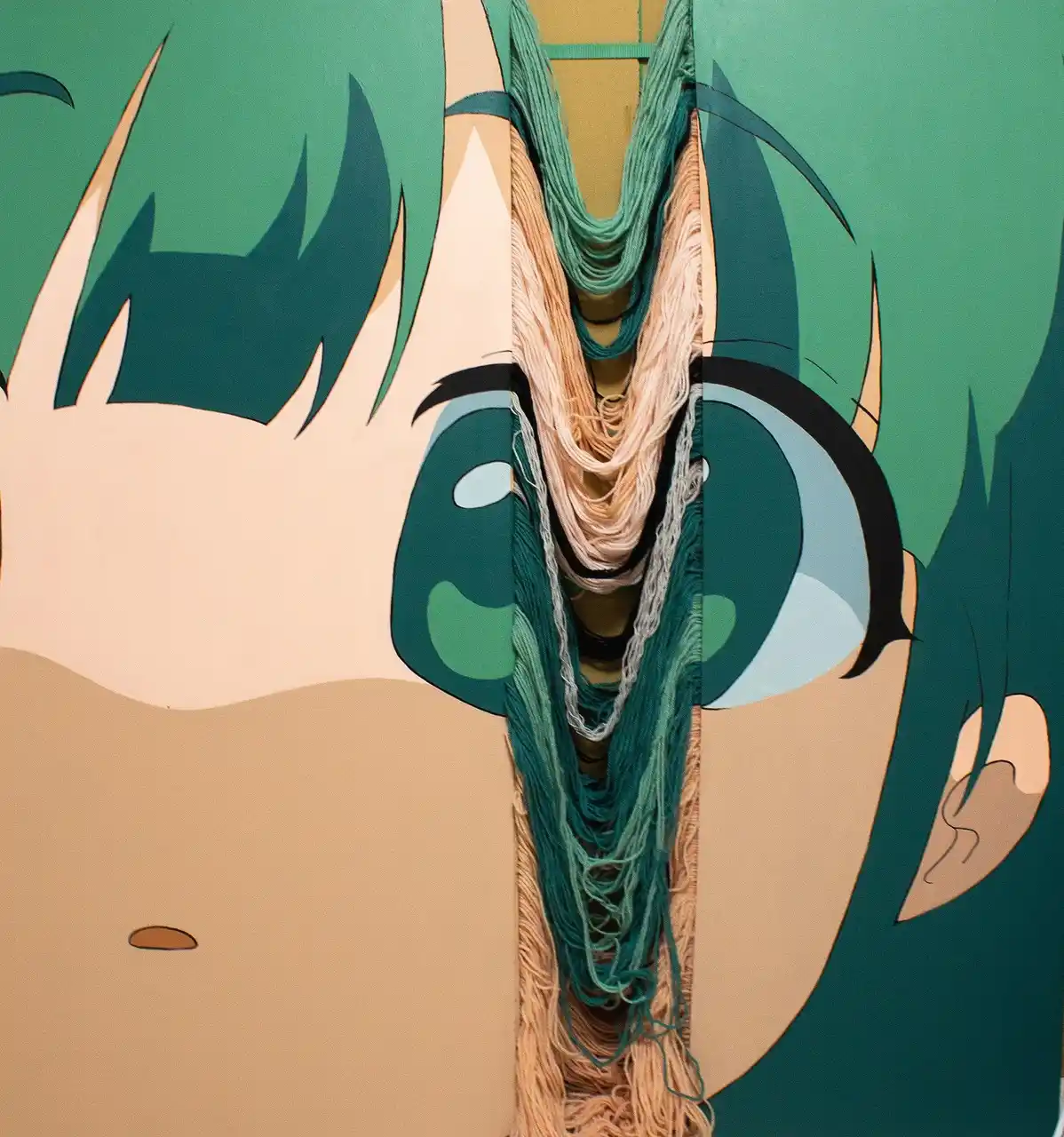 | 一方、ももえはキャラクター的なイメージと毛糸や木材などの日常的な素材を組み合わせることで、平面的なイメージと物質的な存在感が交差する絵画空間を生み出します。画面の内部と外部を行き来するキャラクターは、イメージと素材のあいだに軽やかな関係性を生み出します。 | |||||||||