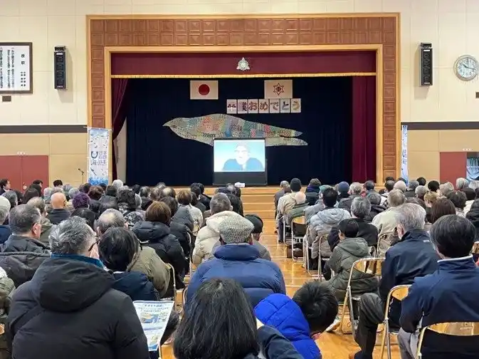 また同日、小樽市立塩谷小学校で同作品の上映会イベントを実施しました。このイベントは、次世代へ豊かで美しい海を引き継ぐために、海を介して人と人とがつながる“日本財団「海と日本プロジェクト」”の一環で実施しています。 |