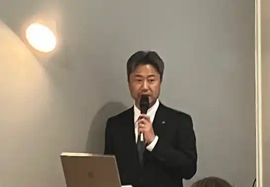 発表会では、森永乳業マーケティング本部 ミルク事業部長の荒生孝が「森永乳業と牛乳事業」をテーマにプレゼンテーションを行いました。