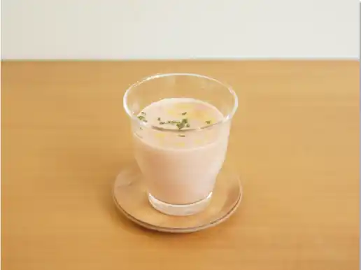森永おいしい牛乳と無塩トマトジュースに、オリーブオイルとスイートバジルを少々加えるだけのお手軽レシピ。レンジで温めればスープに、冷たいまま混ぜればラテになるという画期的なアイデアです。 |