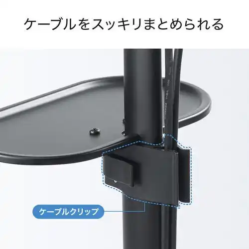 | 付属のケーブルクリップを使えば、電源ケーブルや映像ケーブルを支柱に沿って固定できます。配線が床に散らばるのを防ぎ、見た目もすっきり。安全性と設置環境の美しさを両立した設計です。 | |||||||||