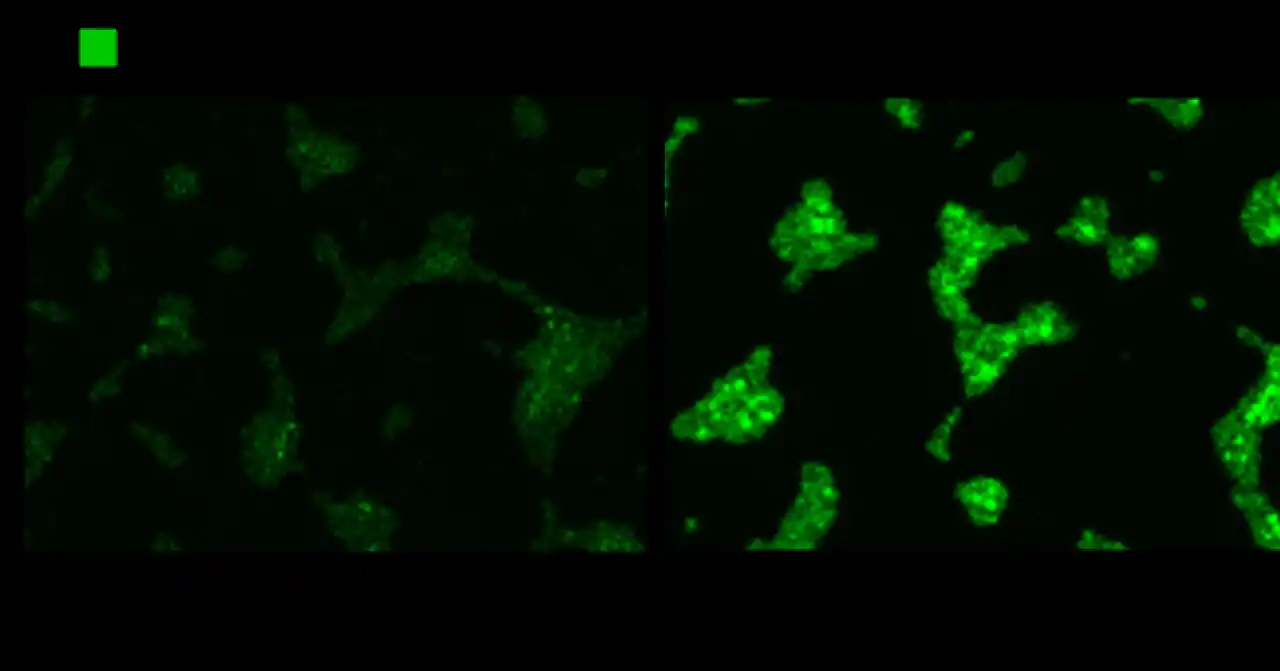 花王は、バイオフィルム内の菌に対する効果を検証するため、陽イオン界面活性剤とバイオIOSを組み合わせた新技術ありおよび技術なし*3の衣料用洗剤を作成。実際の洗たくと同じ条件で、バイオフィルムを形成させた洗たく槽板を模したモデル基板を洗浄しました。その後、共焦点レーザー顕微鏡を用いてモデル基板上のバイオフィルム内の菌を観察すると、新技術ありの場合では菌はほぼ見られず(図2)、菌数は浸漬前より99%減少しました。この結果より、従来困難とされてきたバイオフィルム内の菌に対しても除菌効果*1を発揮することを確認しました。 |