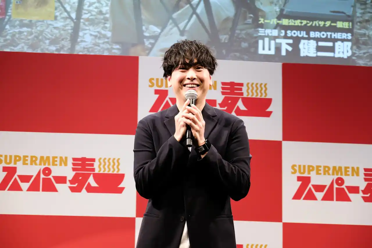 当日は、三代目 J SOUL BROTHERSの山下健二郎さんが登壇し、「スーパー麺」ブランドアンバサダーへの就任を発表。イベントでは山下さん本人が考案した“キャンプ飯”レシピの披露や、サッカー日本代表・早川友基選手との特別企画などが行われました。 |