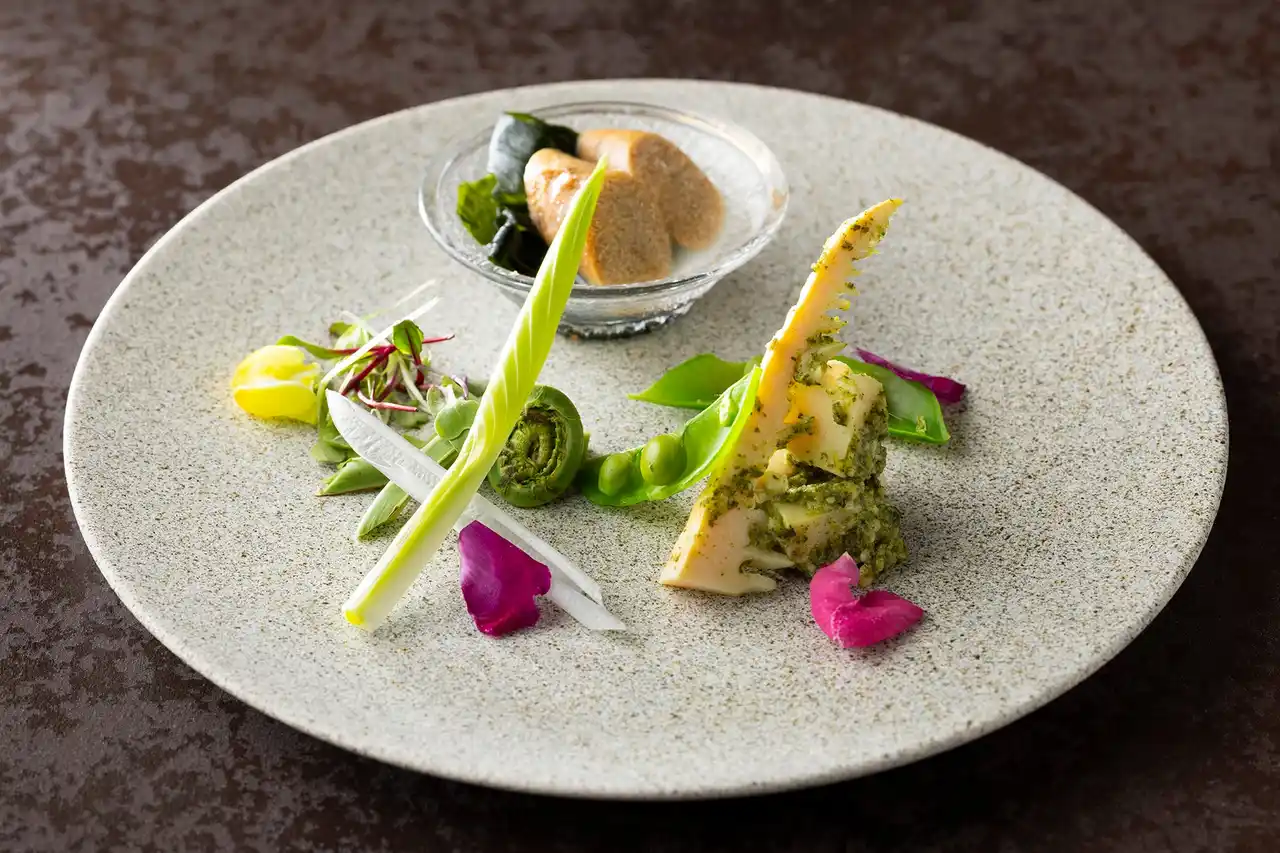 桜鯛の焼きしゃぶ仕立て-春野菜とともに- |