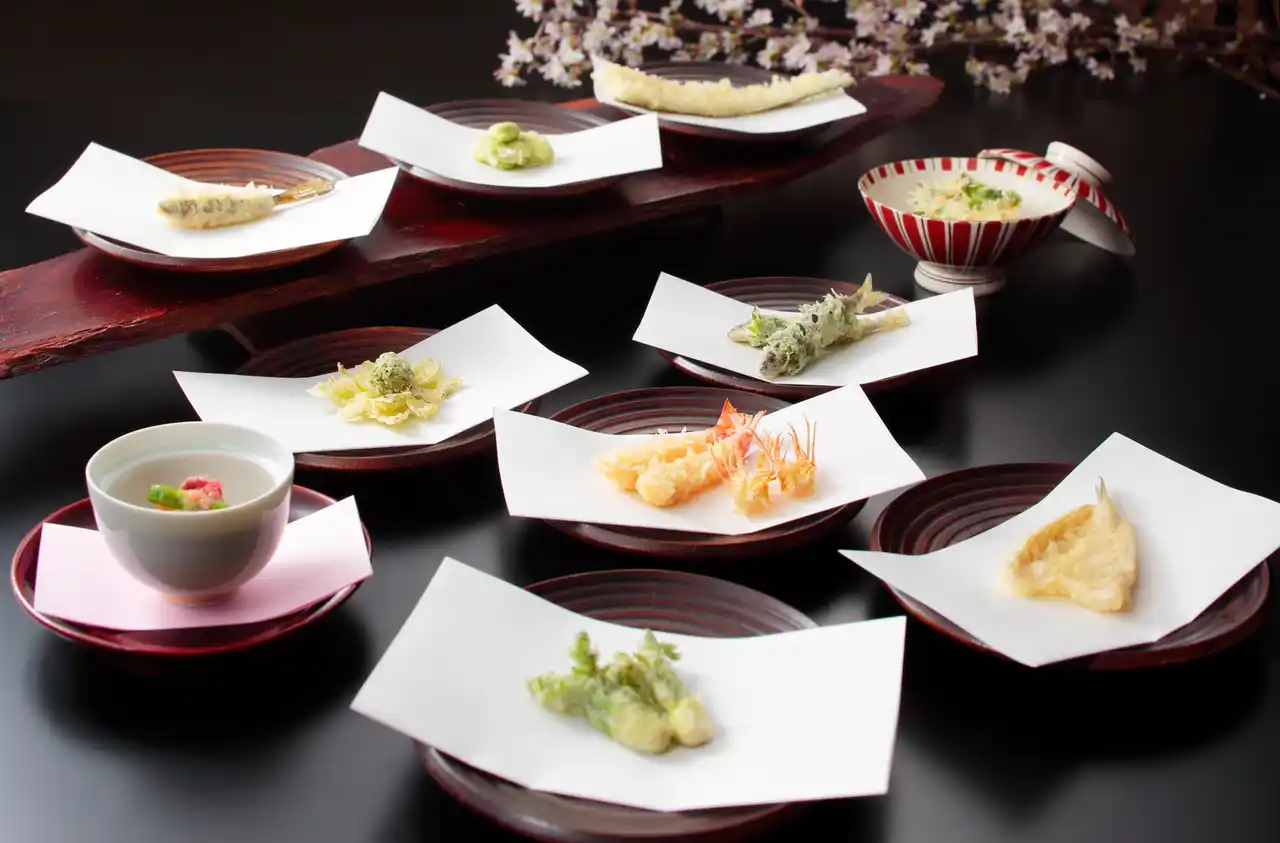 春の訪れを感じていただく季節限定イベント「春の賞味会」を開催いたします。旬の食材の中でも特に希少で香り高い“京都産筍”をはじめ、春ならではの山菜や魚介など、選び抜かれた季節の味覚をご用意。熟練の職人が目の前で丁寧に揚げる天ぷらは、揚げたてならではの軽やかな衣と豊かな香りが魅力です。出来立てをその瞬間に味わう贅沢も、賞味会ならではの醍醐味です。やわらかな春の息吹を感じる料理とともに、五感で楽しむ特別なひとときをお過ごしください。 |