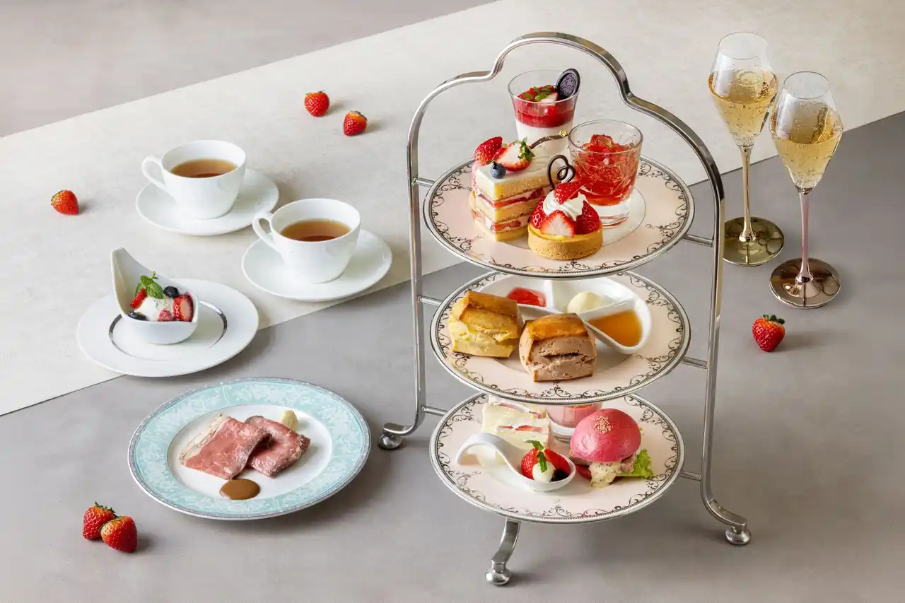 優雅なひとときの代名詞「アフタヌーンティーセット」。この期間のテーマ~ストロベリー~を、ご好評につき5月31日(日)まで延長してご提供いたします。格調高いティースタンドには、旬の苺を贅沢に使用した華やかなスイーツと、ホテルメイドの精巧なセイボリーが美しく並びます。ドイツの老舗「ロンネフェルト」の香り高い紅茶とともに、春のやわらかな陽ざしを感じながら、ゆったりとした午後の時間をお楽しみいただけます。日常を離れ、自分へのご褒美にふさわしい贅沢なティータイムをお届けいたします。 |