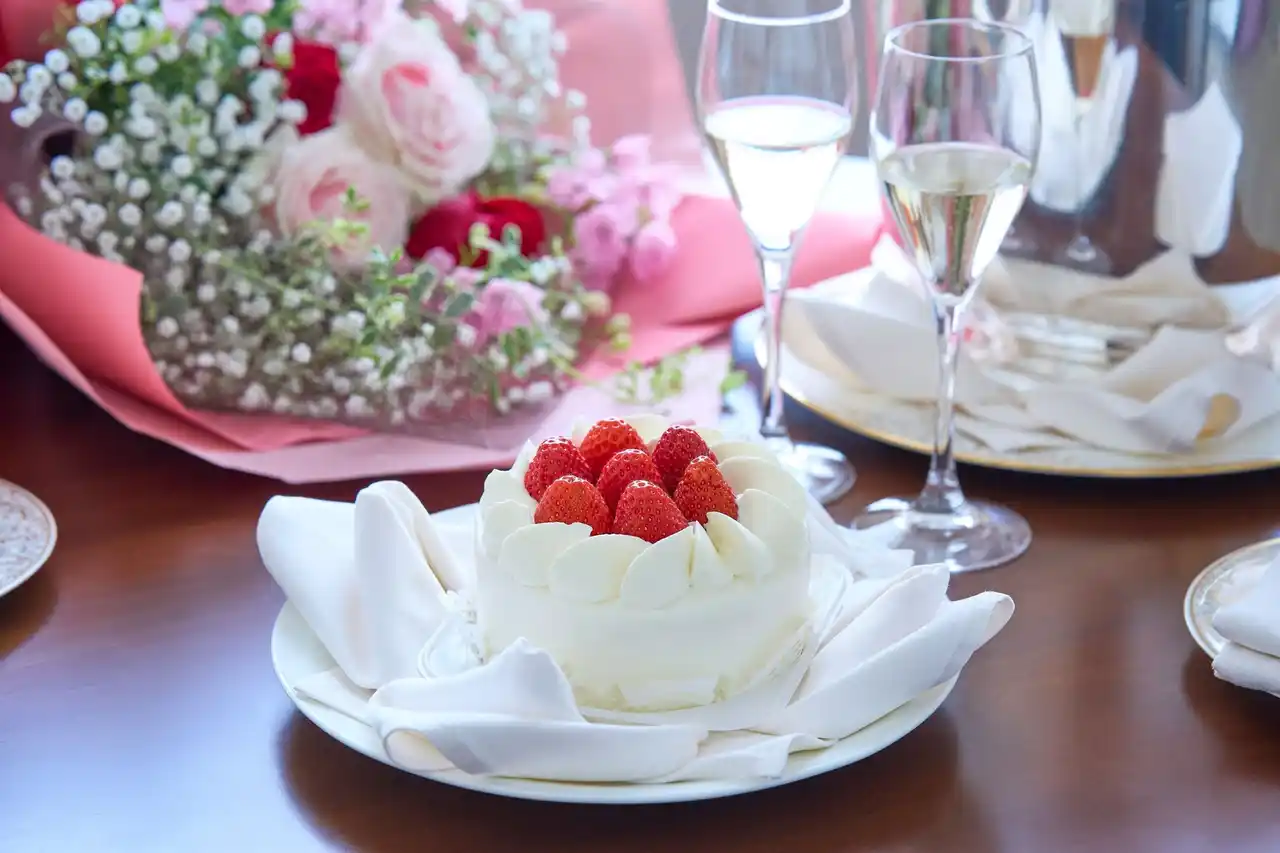 レストランでの美食の余韻に浸りながら、プライベートな空間でさらに特別な思い出を作りませんか。大切な方のお誕生日や記念日、プロポーズなど、一生の記憶に残るひとときを演出する「セレブレーションステイ」をご用意いたしました。お部屋のドアを開けた瞬間に広がるのは、華やかなバルーンデコレーションの世界。ベッドサイドやベッド上を彩るバルーンは、ピンク、ゴールド、ブルーなどお好みのカラーをお選びいただけます。さらに、サプライズでお届けするホテル特製ホールケーキが、豪華なお祝いシーンをより一層盛り上げます。お部屋全体が祝福に包まれる贅沢なステイ。大切な方への想いを形にする、ホテルならではのアニバーサリーをぜひお楽しみください。 |