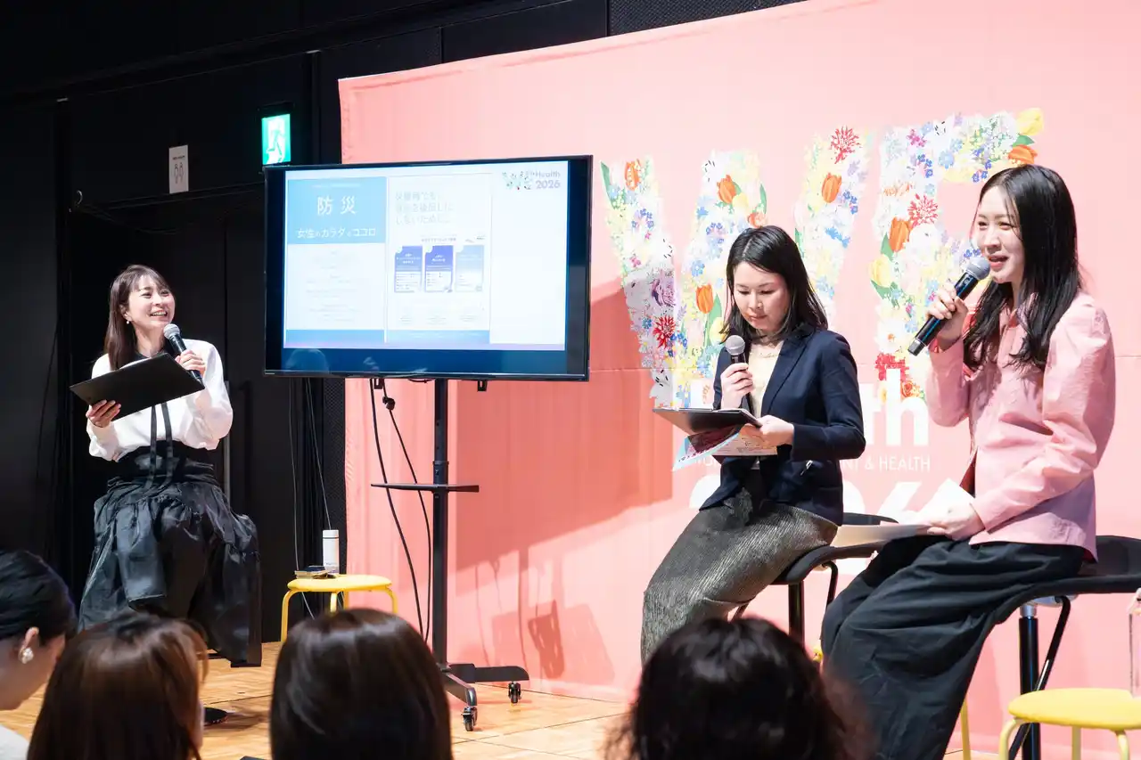イベント初日の3月6日会場内では、<WEHealth INSIGHTS presents>「その防災、本当に“わたし向け”ですか?女性のカラダとココロから考える、防災の新しい視点」と題したトークセッションを開催しました。 |