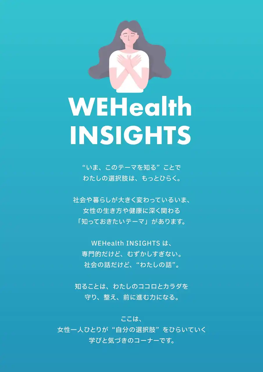 WEHealth INSIGHTSは、「いま、このテーマを知ることで、わたしの選択肢はもっとひらく」という考えのもと、2026年よりスタートした新たな取り組みです。 |