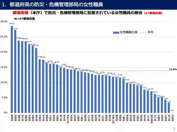内閣府「地方公共団体における男女共同参画の視点からの防災・復興に係る取組状況についてフォローアップ調査結果」)。 |