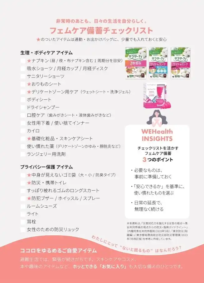 WEHealth INSIGHTS。WEHealthオリジナル「フェムケア備蓄チェックリスト」 |