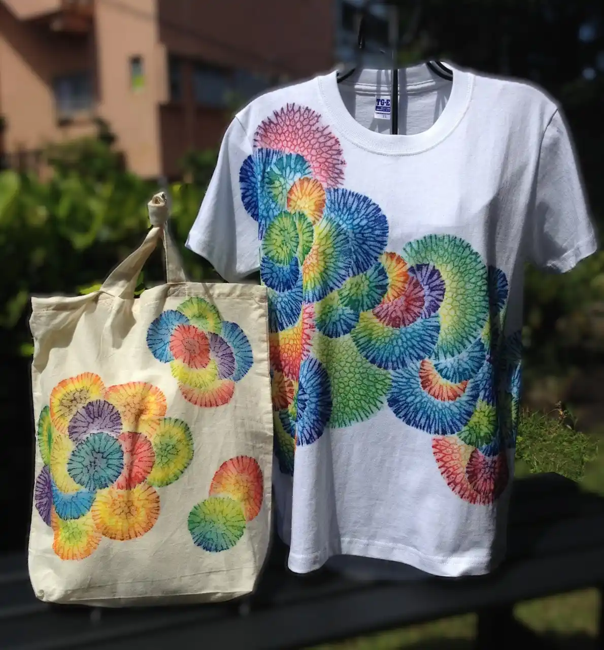 サンゴの化石を使ってカラフルで可愛いTシャツやミニトートバッグをつくろう! |