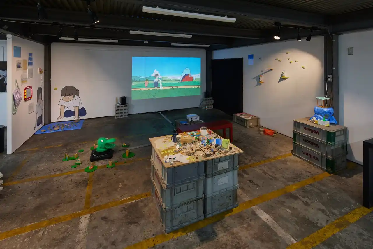 初短編アニメーション作品『田舎星』の上映と、Oh Hey Doの3人が共有していた制作世界を再現しました。私たちは3人全員が監督として制作のすべてに関わっています。そのため、一つの判断にも日々の雑談を含む多くの対話を交わしています。この非効率ながらもそれぞれの視点やこだわりが混ざり合うプロセスは作品コンセプトと深く結びついています。議論の過程や、日々のフィールドワークで収集され実際に『田舎星』に登場するオブジェクトの、物としての面白さを直に鑑賞してもらえると嬉しいです。 |